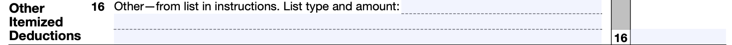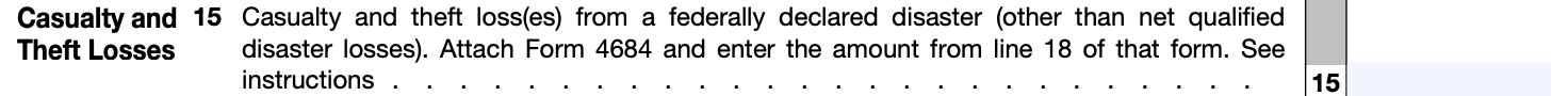 If you have eligible casualty or theft losses, complete and attach Form 4684. Enter the total losses from Form 4684 on line 16.