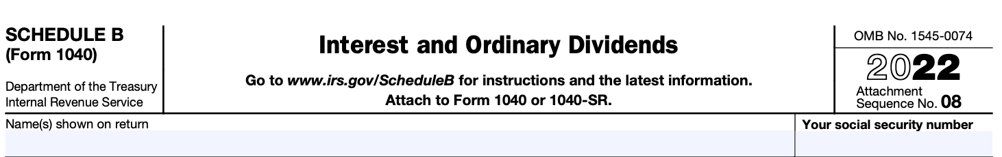 At the top of Schedule B, you'll need to fill in your name, Social Security number, and any other required personal information.