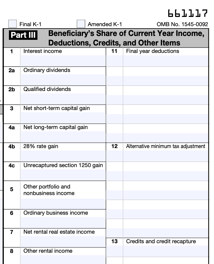 Schedule K-1 (Form 1041): Beneficiary’s Share of Income, Deductions, Credits